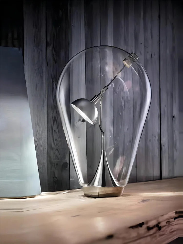 Magnet lamp in glass, brightness & lamp angle are adjustable via magnet.